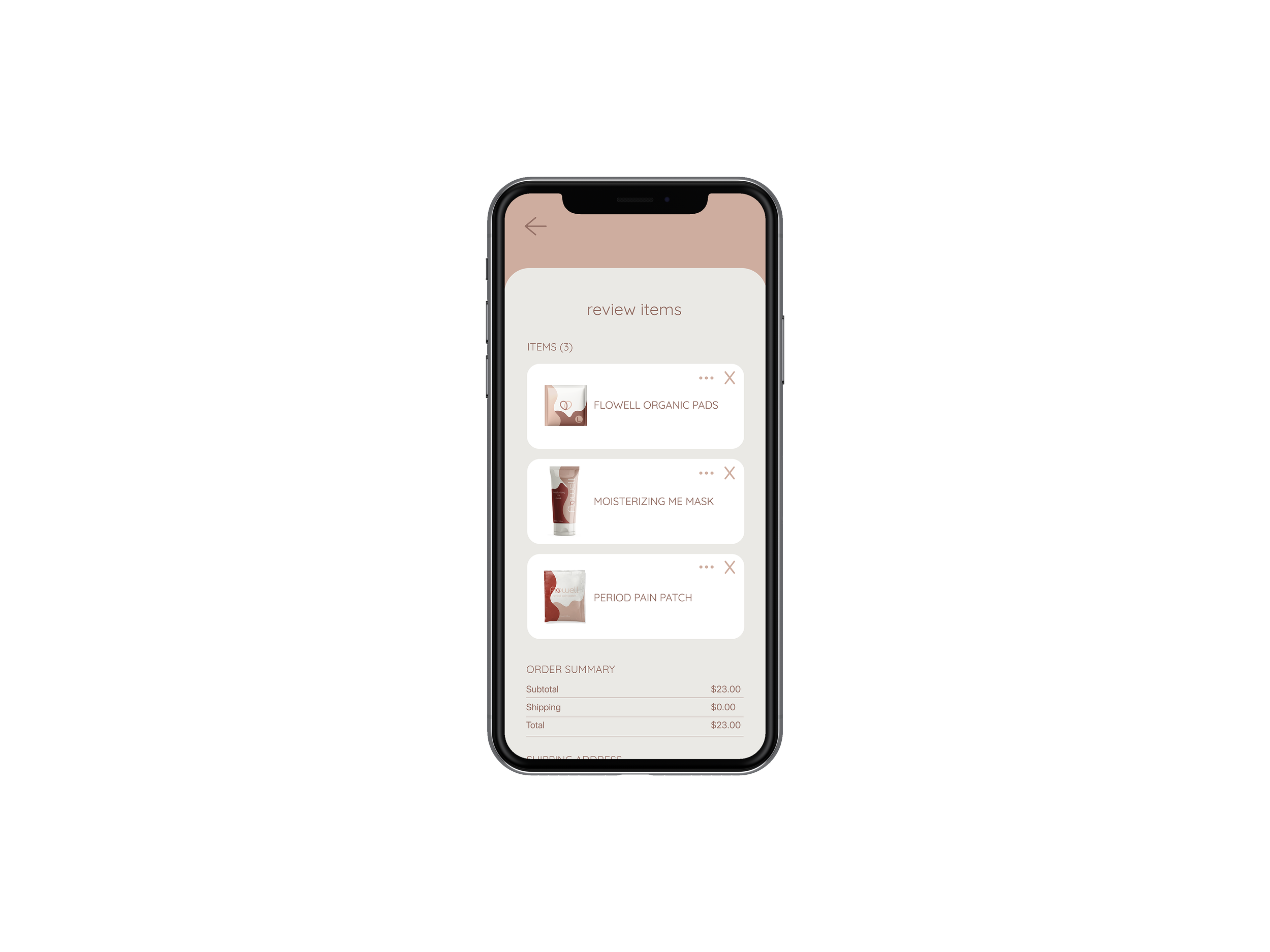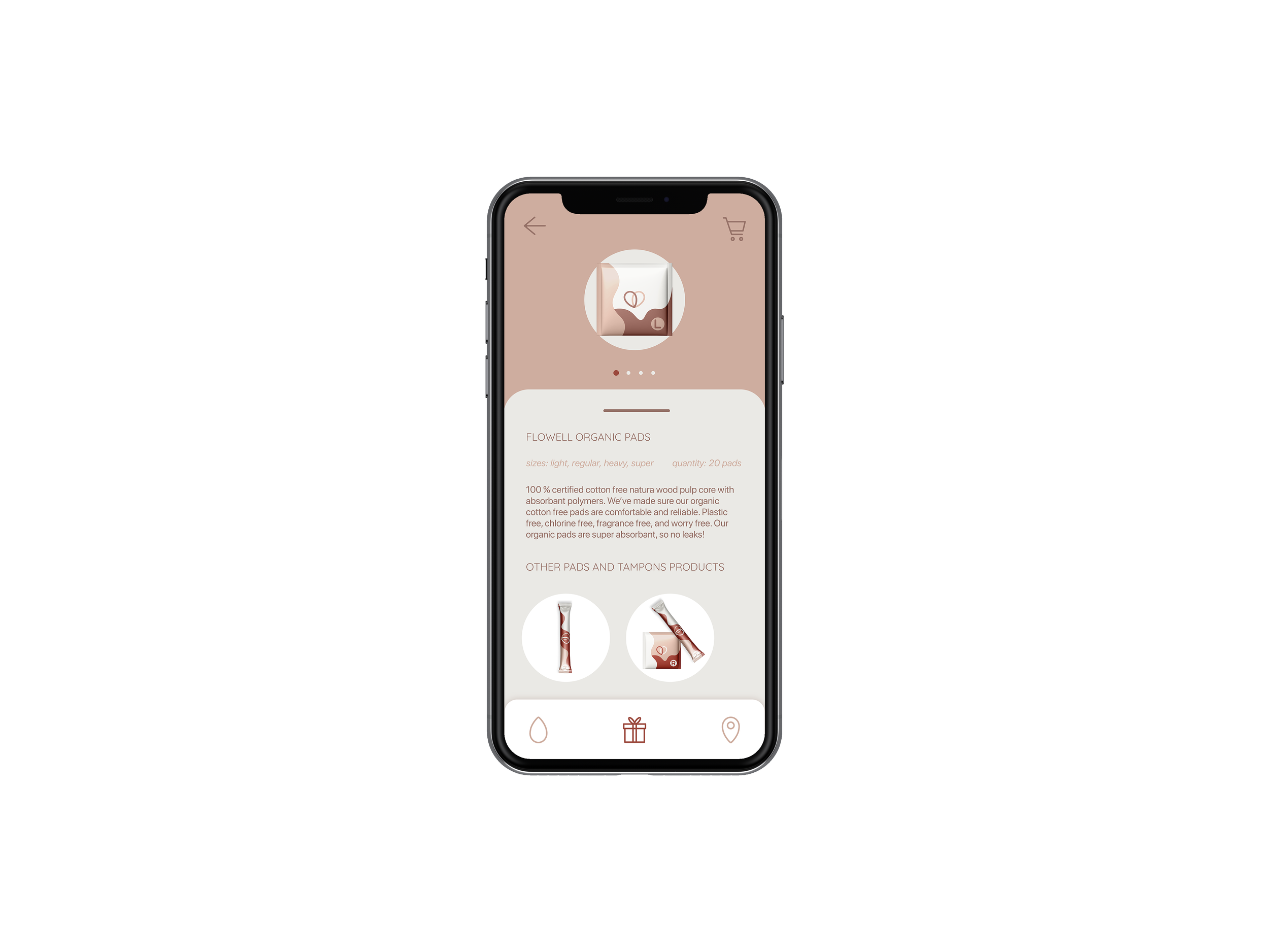 The solution was to create a modern, natural but friendly feel. The rounded sans-serif gives the logo a friendlier feel while the nudes of the color palette are soothing. The two overlapping droplets come together to create a heart, signifying wellness and togetherness. The shapes used within the packaging and app are organic and flowy which also add to the soothing appeal of the branding. The app interface is simple and easy to use, to emphasize Flowell’s ideals of making things as convenient and stress-free as possible.